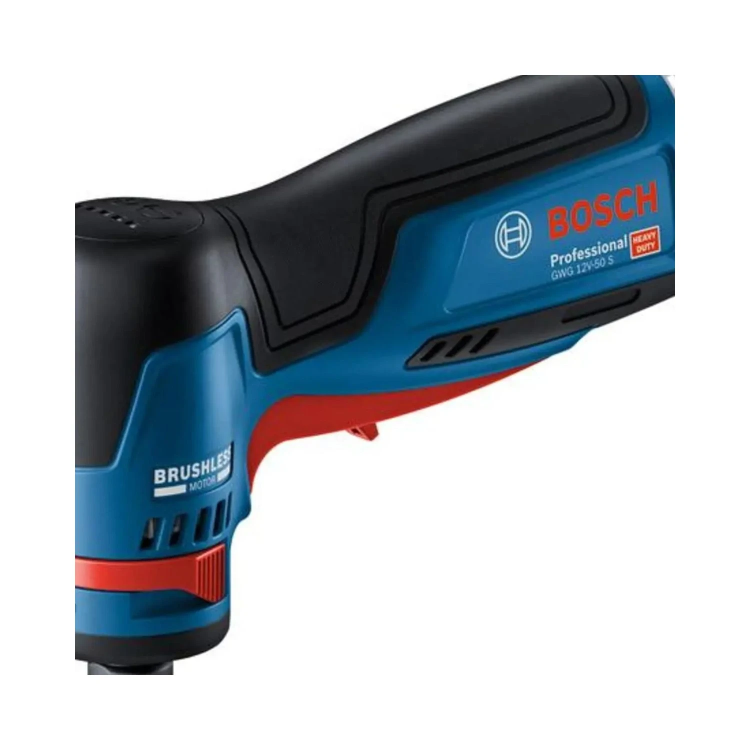 Thanks to its powerful, high-performance brushless motor and high torque, the GWG 12V-50 S Professional gets all grinding jobs done quickly and easily. Its great ergonomics with an extremely light and compact design with small grip size ensure fatigue-free work, even in tight spaces. The cordless 12V grinder’s variable speed trigger switch and 5 speed modes enable perfect speed control for various applications and optimal results.