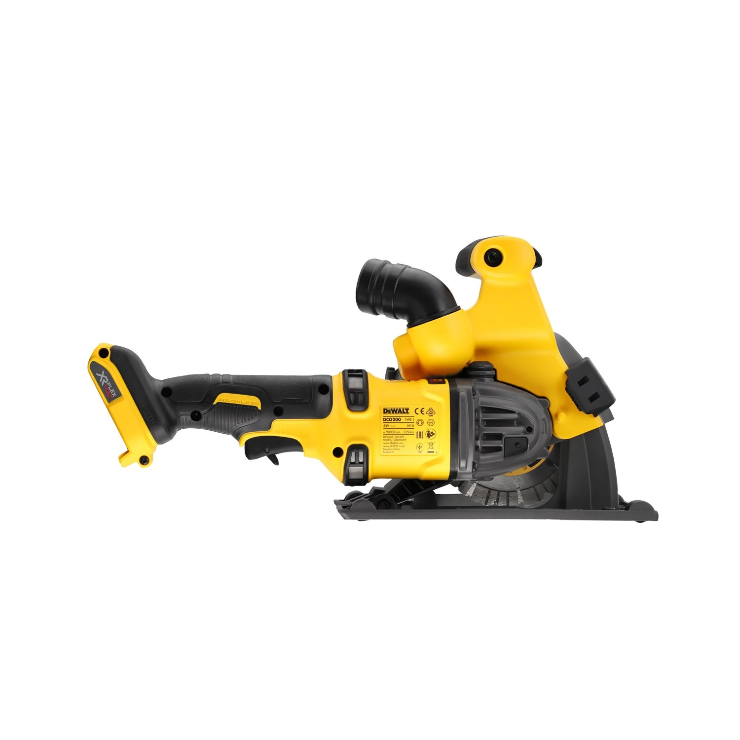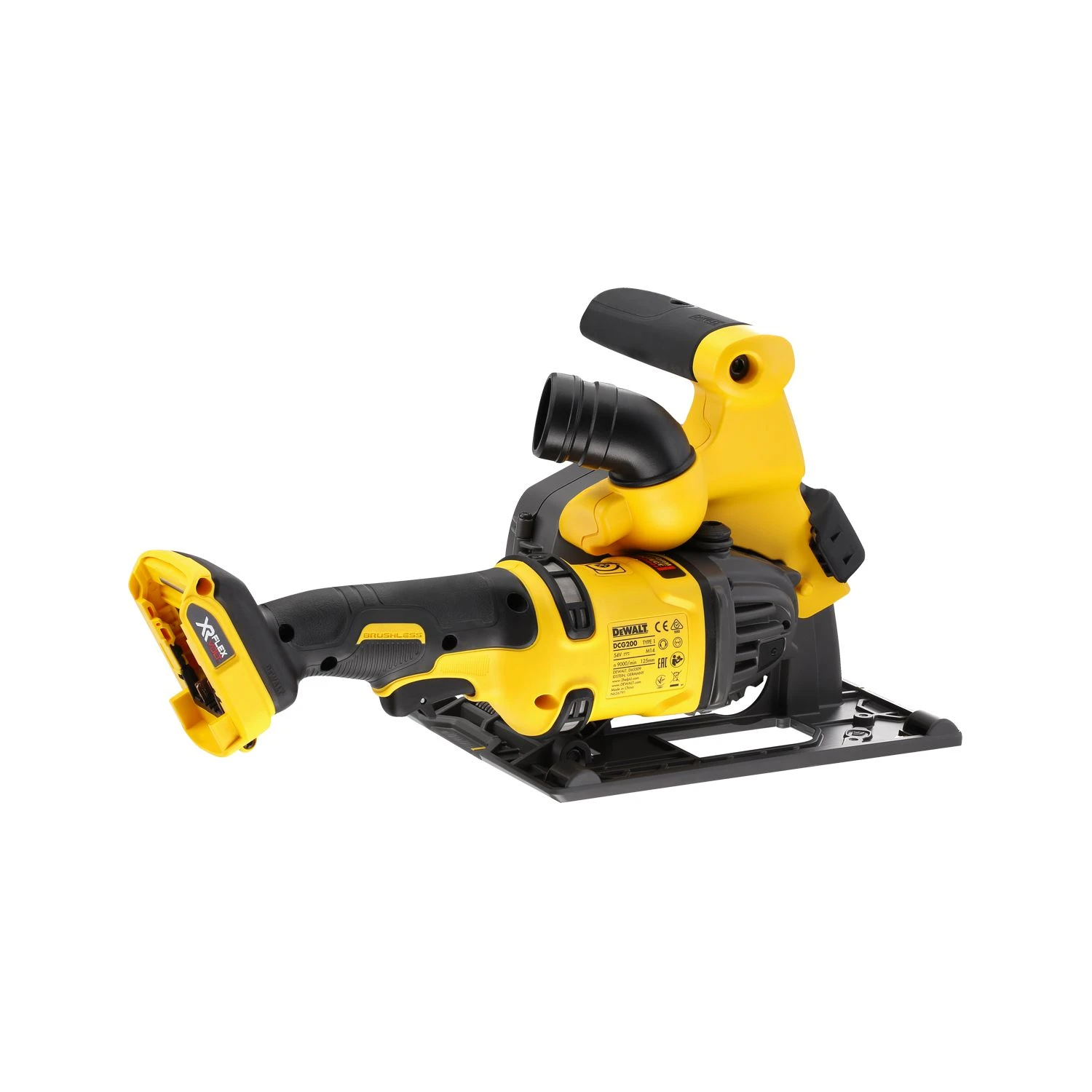 The DEWALT DCG200 54V XR FLEXVOLT BL Wall Chaser TSTAK Bare is the ideal machine for electricians and plumbers that need to create vertical or horizontal runs quickly and accurately. Thanks to the built in wireless tool control function the DCG200 is ideal to use with the DCV586M M class extractor. Convenience and safety are two of the biggest parts of the design with the DCG200. The electronic brake stops the wheel quickly when the trigger is disengaged, the electronic clutch reduces the kickback in the event of a pinch or stall and the rubber overmould provides enhanced grip and comfort. The machine features tool free blade height adjustment and a tool free quick release guard for easy blade access.
