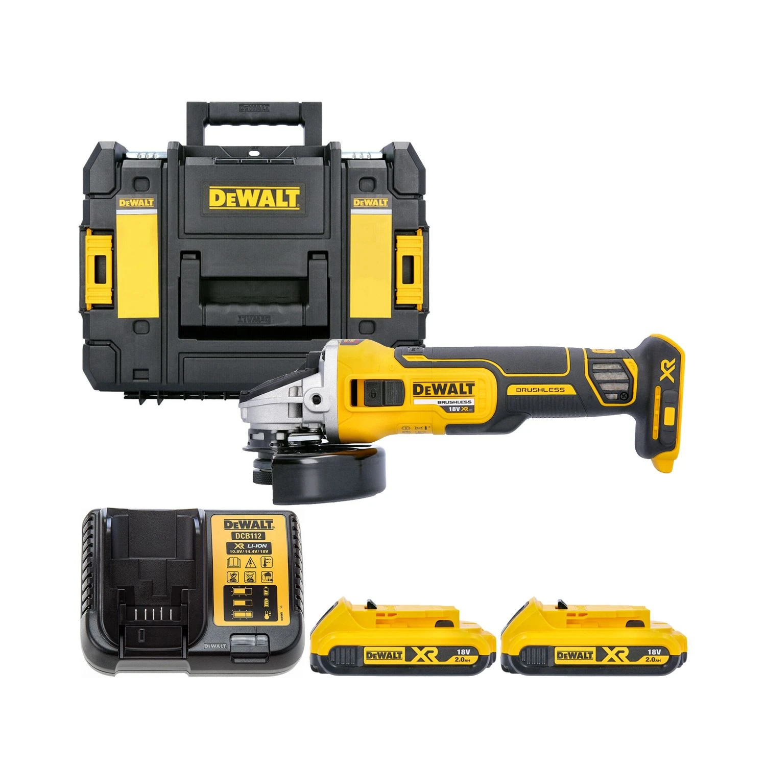The DCG405 is a brushless angle grinder which is powered by DeWalt 18v XR lithium ion batteries. It has a slim and streamlined body with rubber overmoulding for excellent comfort, grip and control, while the compact angled gear head allows improved access to tight spaces. The machine is activated by a side mounted slide switch which has built in restart protection; a No-volt release system resets the switch in the event that the battery becomes depleted or detached while the grinder is in operation, thus ensuring it cannot start up by itself when power is restored. The DCG405 also has an electronic clutch and fast action brake, helping to safeguard against kickback or disc bursts and bringing spinning accessories to a rapid halt in under 2 seconds