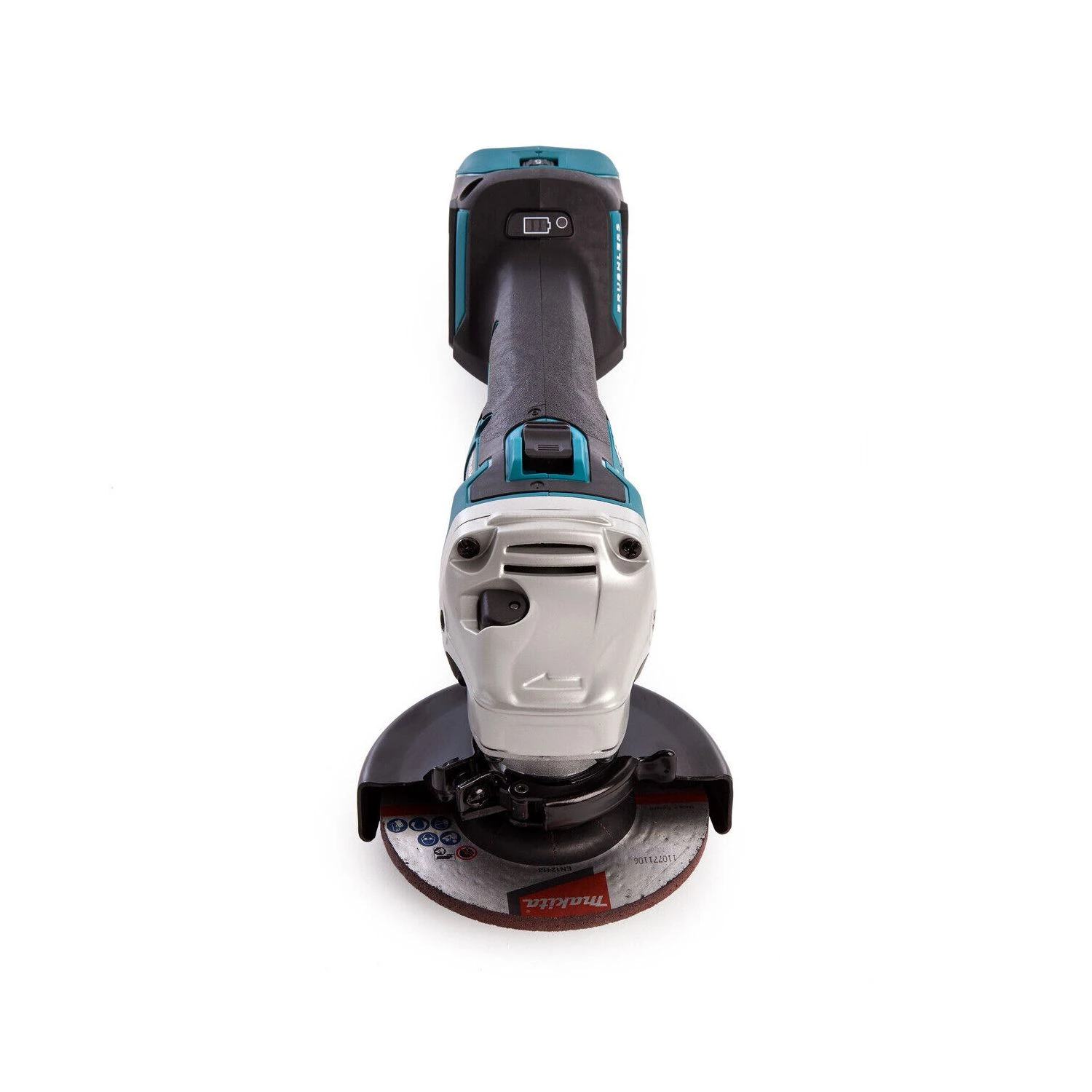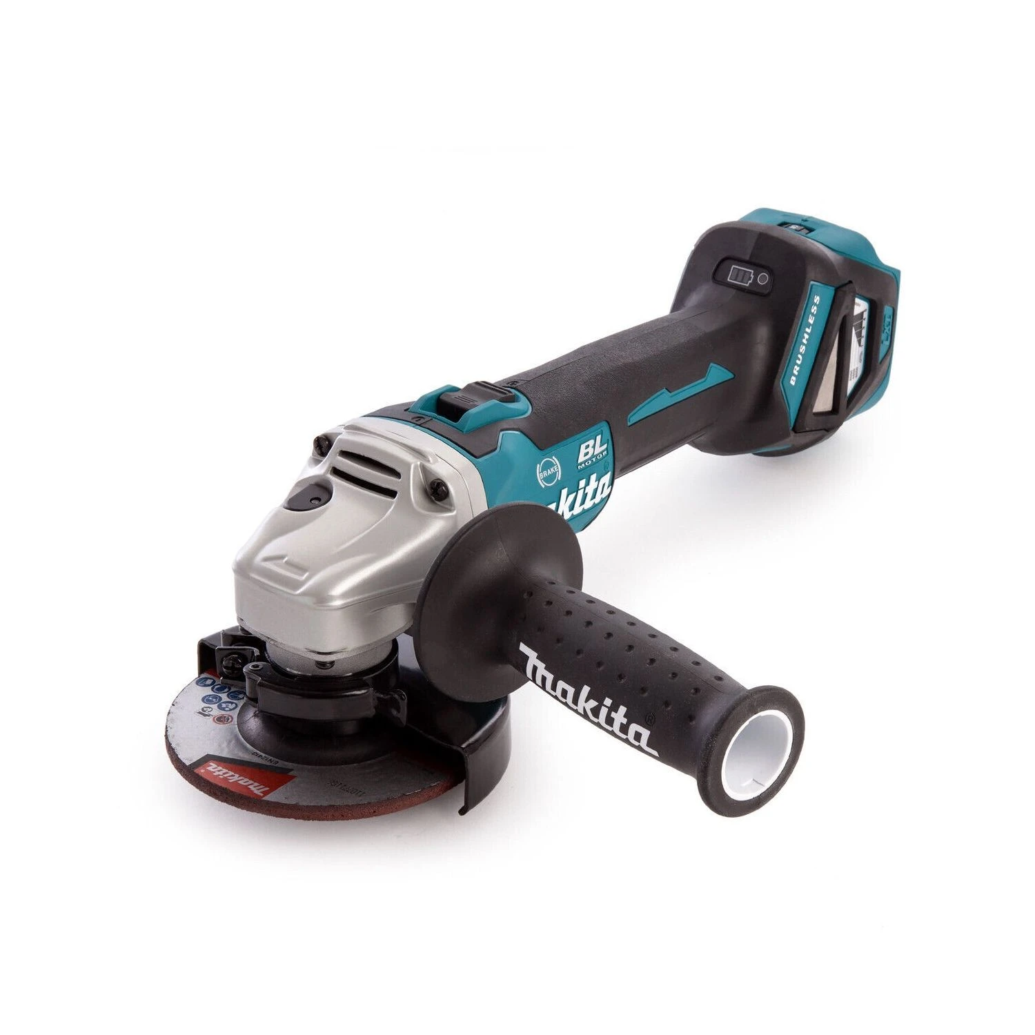 The Makita model DGA463Z is an 18V LXT Brushless 115mm Angle Grinder that is ideal for professional and DIY use as it is versatile, robust and powerful. It takes 115mm grinding discs and has a slide switch with variable speed for full control. To provide safety for the user it has a clever anti-restart function, meaning if the tool unexpectedly shuts off, from a power cut, for example, it will not automatically turn back on when it is supplied with power again, this will prevent injury and damage to the workplace. To increase comfort for the user, it has an ergonomically designed soft-grip handle. The electric brake ensures extra control and safety whilst using this machine. This grinder also has a lock-on function for continuous use to reduce tiring of the user’s hand.