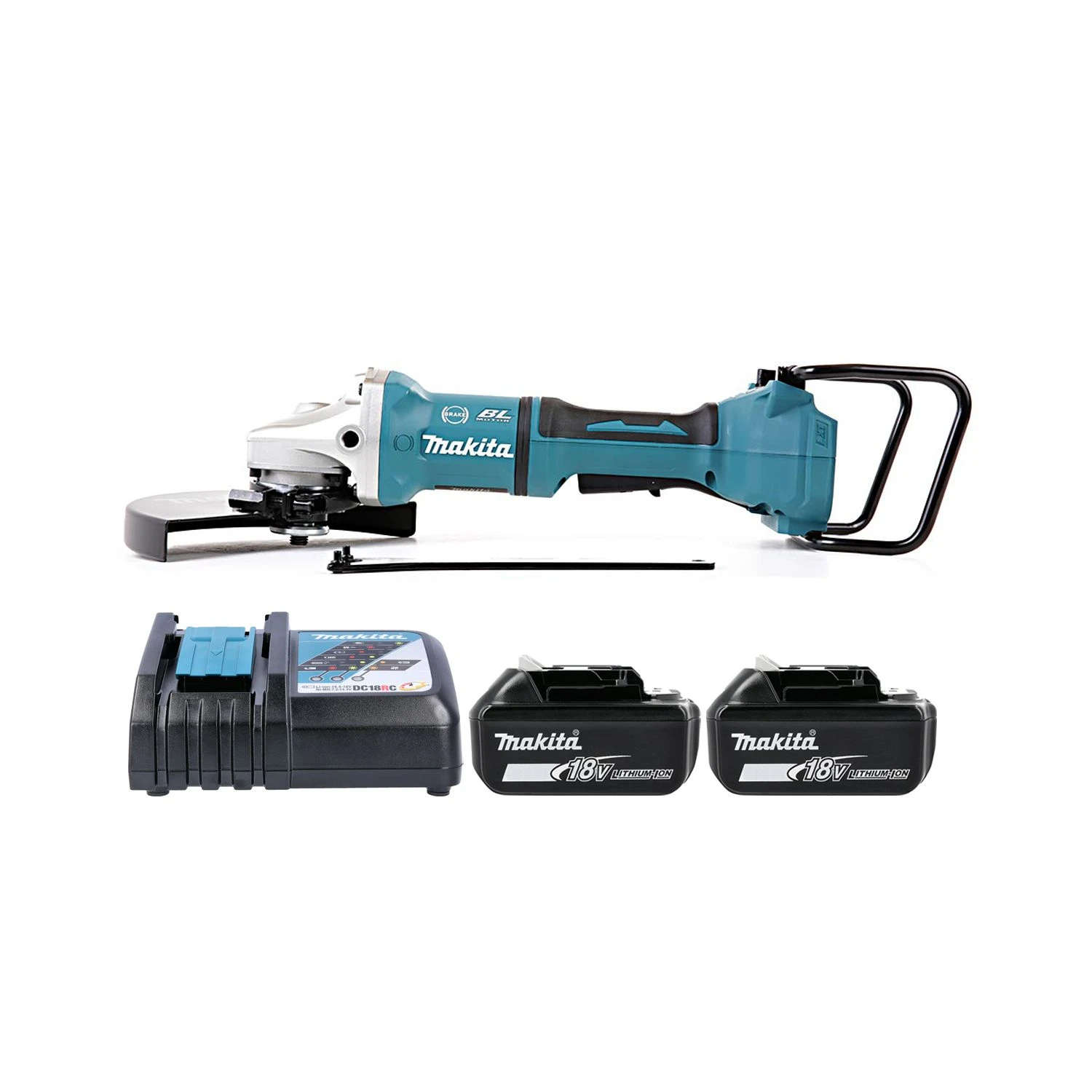 Makita DGA900 are high powered 230mm (9″) cordless angle grinders powered by two 18V Li-ion batteries in series. The 36v DC motor delivers more power and run time without leaving the 18v Lithium-ion platform. Featuring Automatic Torque Drive Technology (ADT): Automatically changes the cutting speed according to load condition for an optimum operation. Active Feedback Sensing Technology (AFT): Shuts down the tool to protect the user if the rotation speed suddenly slows down.