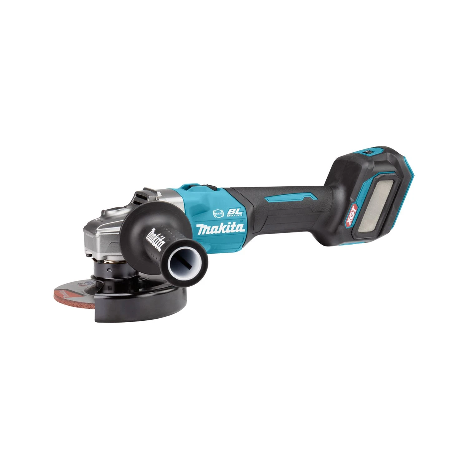 The Makita GA023GZ01 is a 125mm 40Vmax XGT Li-ion battery powered cordless angle grinder that delivers grinding and cutting power similar to 1000 watt class AC models. The brushless motor provides optimal efficiency and runtime from the 40Vmax battery. The grinder features Active Feedback Sensing Technology (AFT) which shuts down the tool if the rotation speed suddenly slows down. The 40Vmax range of grinders are designed to be able to continuously perform heavy-duty cutting and grinding.