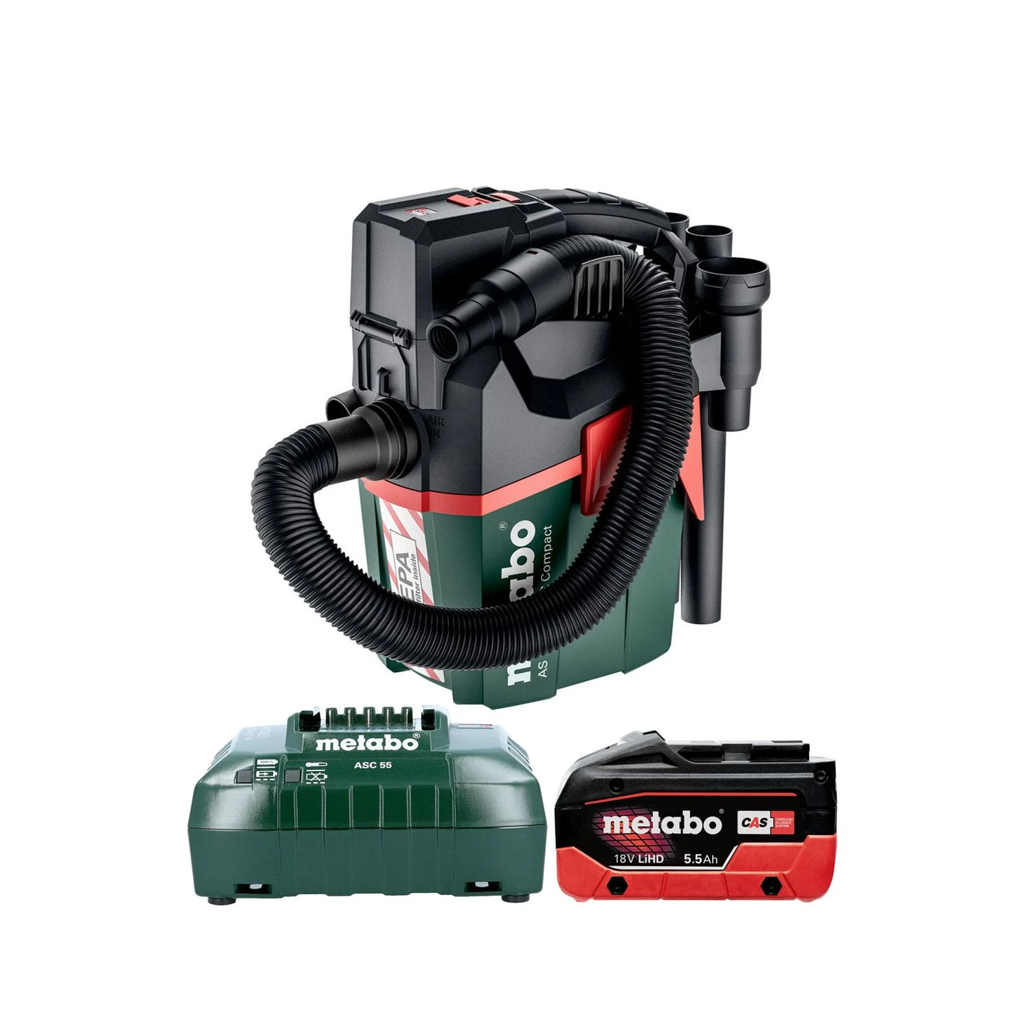 Metabo AS18 HEPA PC COMPACT 18V L Class HEPA Filter Cordless Wet & Dry Vacuum Cleaner With 1 X 5.5Ah Battery & Charger